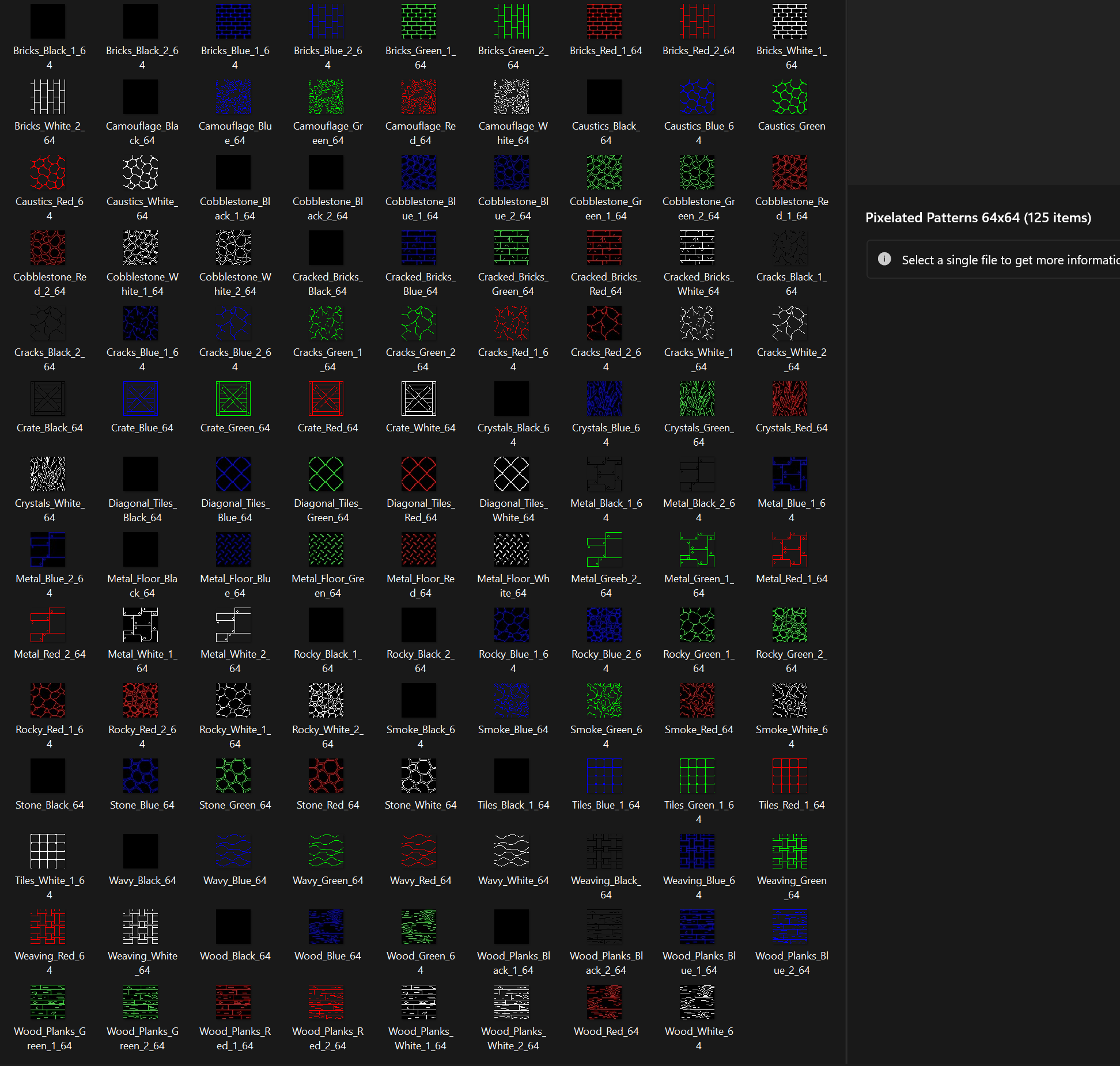 | Tags | 2D, 32x32, 64x64, Asset Pack, Pixel Art, pixelated, Royalty Free, seamless, Sprites, Textures |