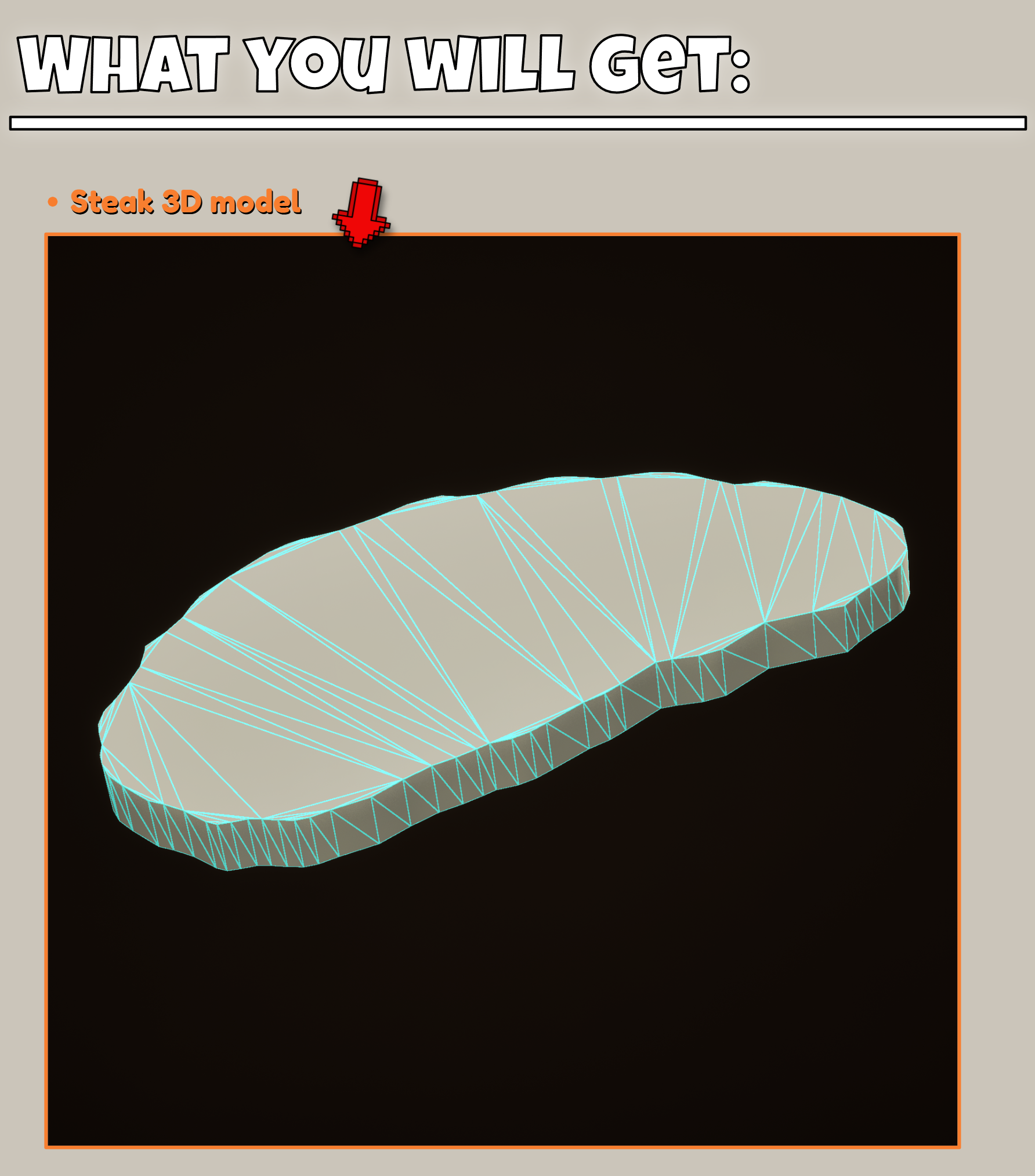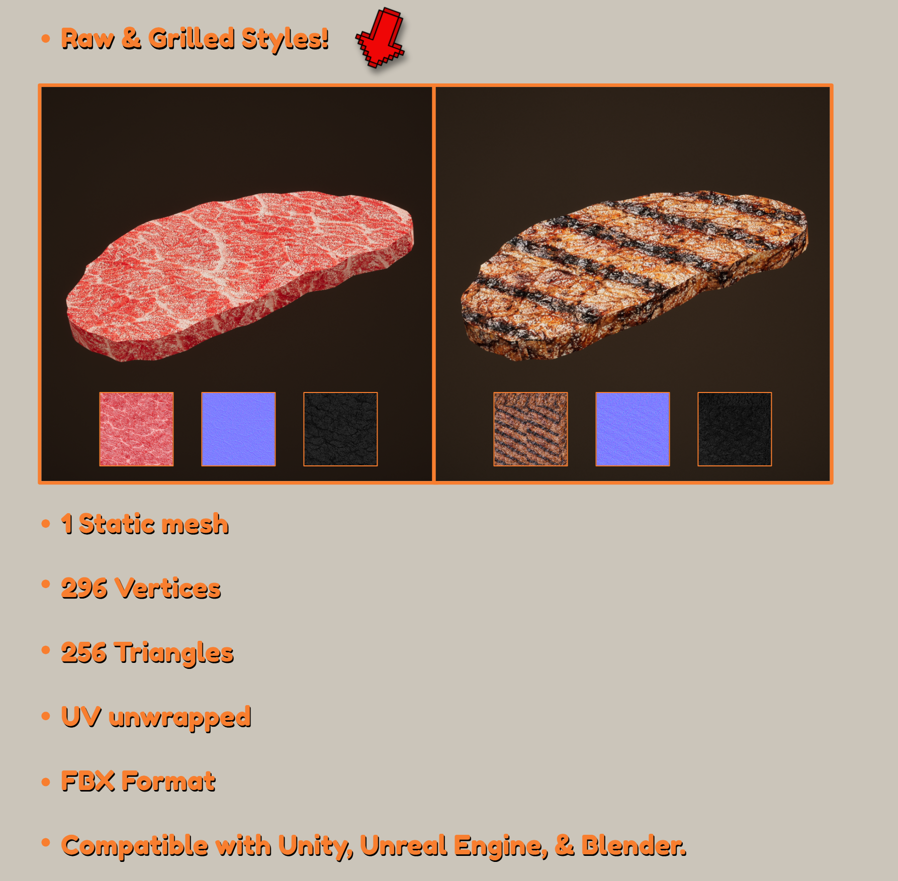 | Tags | 3D, 3d-model, Asset Pack, Blender, Models, steak, Textures, Unity, Unreal Engine |